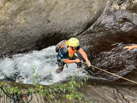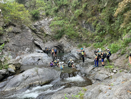 很喜歡帶著學生去山林裡溯溪,因為可以透過溯溪學習體會到好多事情,例如看到溪流裡的魚蝦蟹蛇,知道我們與很多生命共享這條溪流,學習如何珍惜水源、例如在面對深潭急瀑,我們知道自己的渺小,同時學習團隊合作及探險但不冒險的能力與精神、例如面對大自然,永遠能把最真實的一面流露出來,包含內心的恐懼及害怕,當然也包含看到深潭及瀑,就忍不住想要玩一樣。